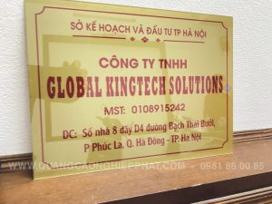 biển tên công ty bằng mica in nhũ đồng được nhiều đơn vị, vă phòng lựa chọn