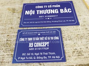 Ngoài ra còn có các vật liệu tương đương như biển công ty inox, biển mica khắc âm bản hoặc nhôm, kính… tùy theo yêu cầu và vị trí lắp đặt và tùy từng thiết kế.