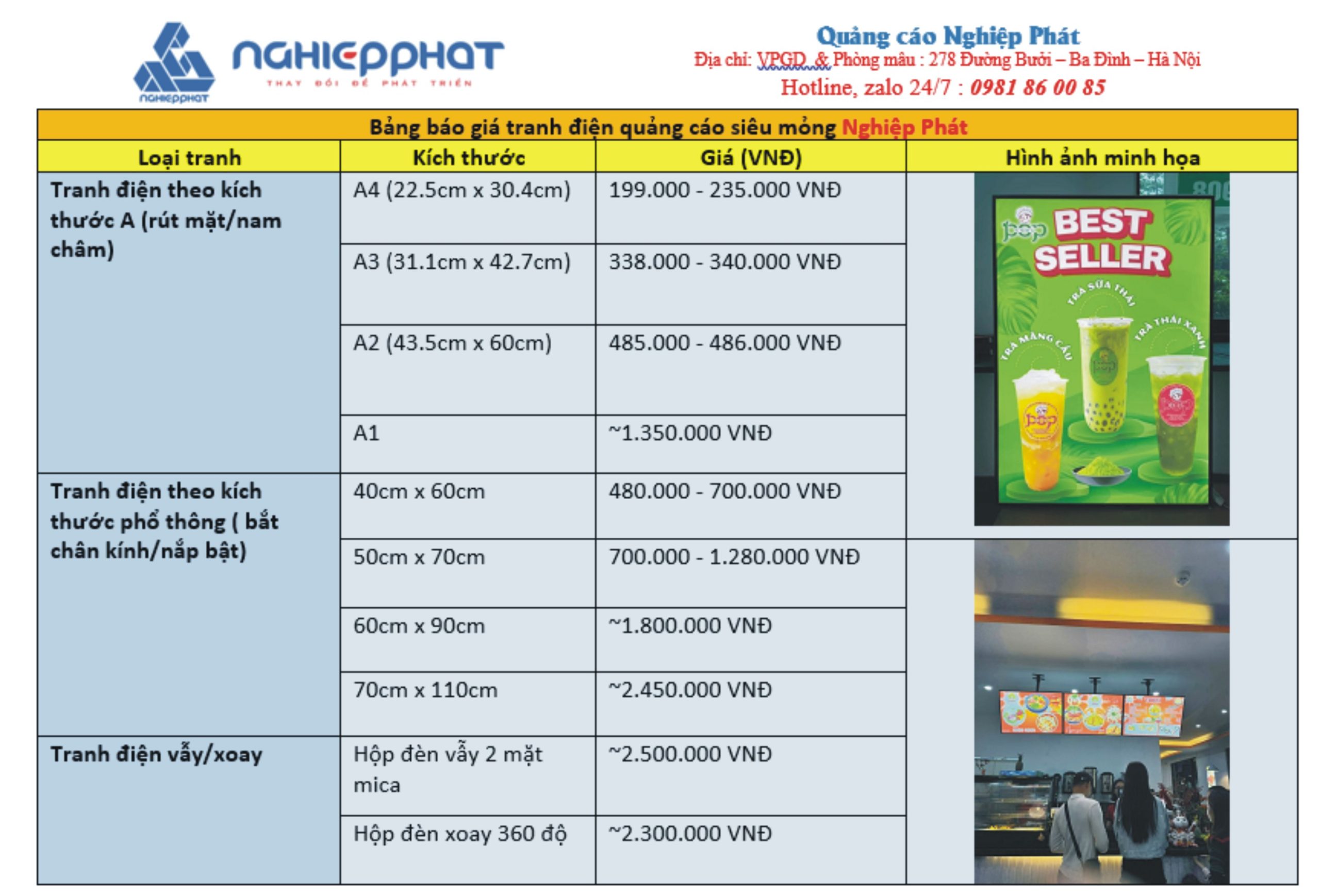 Bảng giá tranh điện quảng cáo siêu mỏng