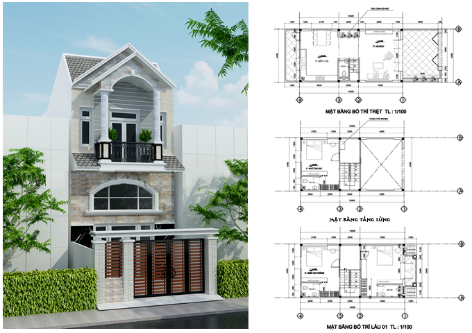 Hình ảnh phối cảnh 3D biệt thự kiểu pháp 2 tầng 10x20m