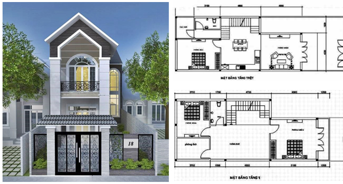 Mẫu thiết kế nhà ống đẹp 2 tầng – Mẫu nhà đẹp 4 x 16 m