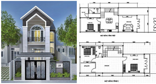 1. Mẫu thiết kế nhà ống 2 tầng kích thước 5,5x 14m.